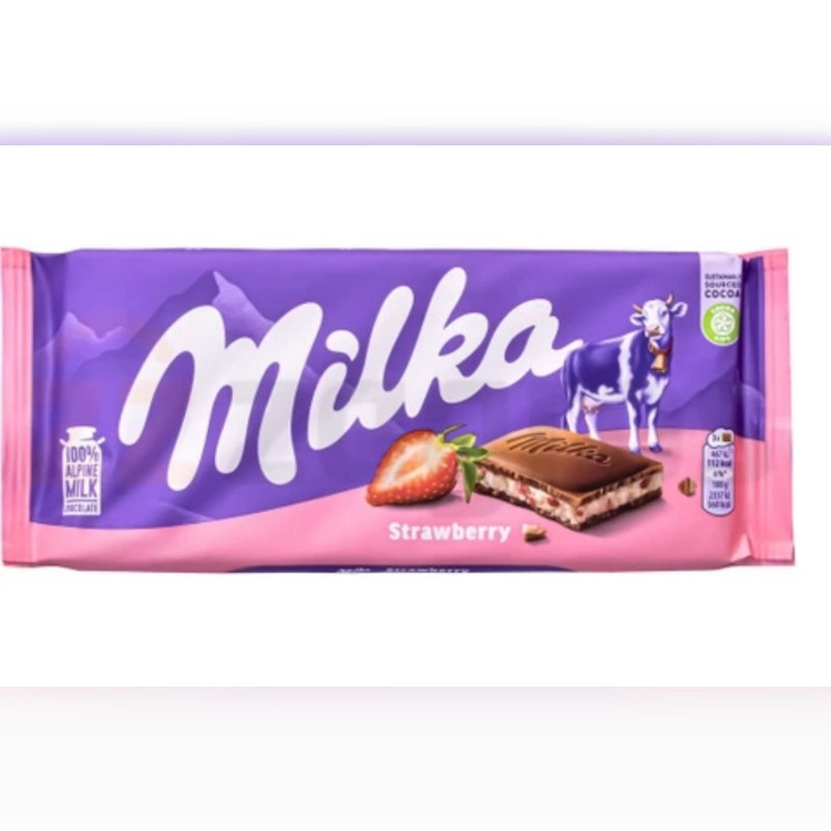 شکلات میلکا با طعم شیر و توت فرنگی starwberry حجم 100 گرمی ا Milka chocolate with milk and starwberry