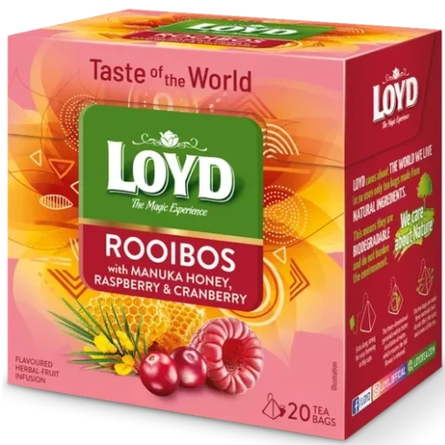 چای رویبوس با طعم عسل مانوکا، تمشک و زغال اخته 34 گرم Loyd