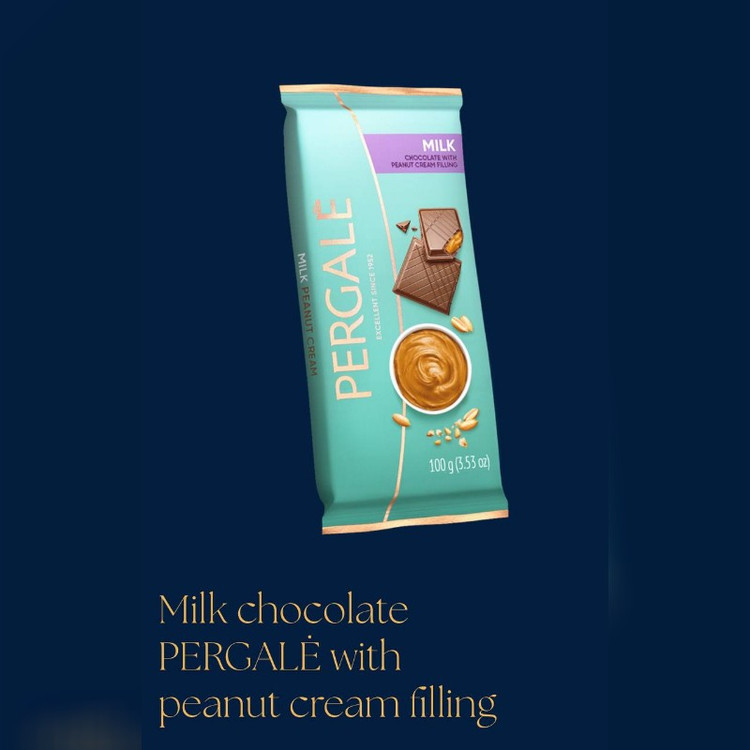 شکلات تخته ای پرگاله با فیلینگ کره بادام زمنی 85 گرم Pergale