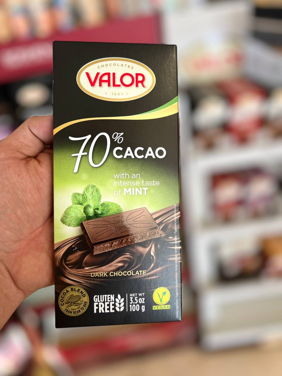 یشکلات تخته ای 70 درصد تلخ بدون گلوتن نعنایی والور (valor) 100 گرم