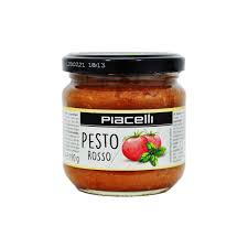 شرکت Piacelli یکی از برندهایی است که این نوع پستو را تهیه و عرضه کرده است، تحت نام “Pesto Rosso Piacelli” یا “Antipasti Pesto Rosso 190g”.